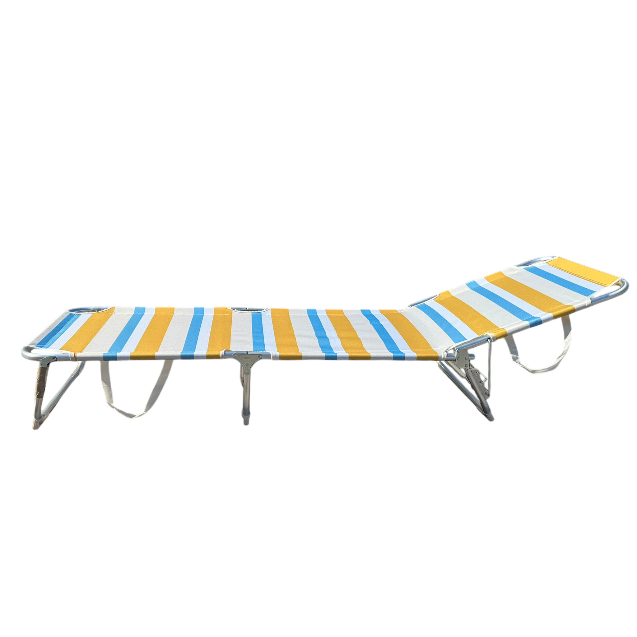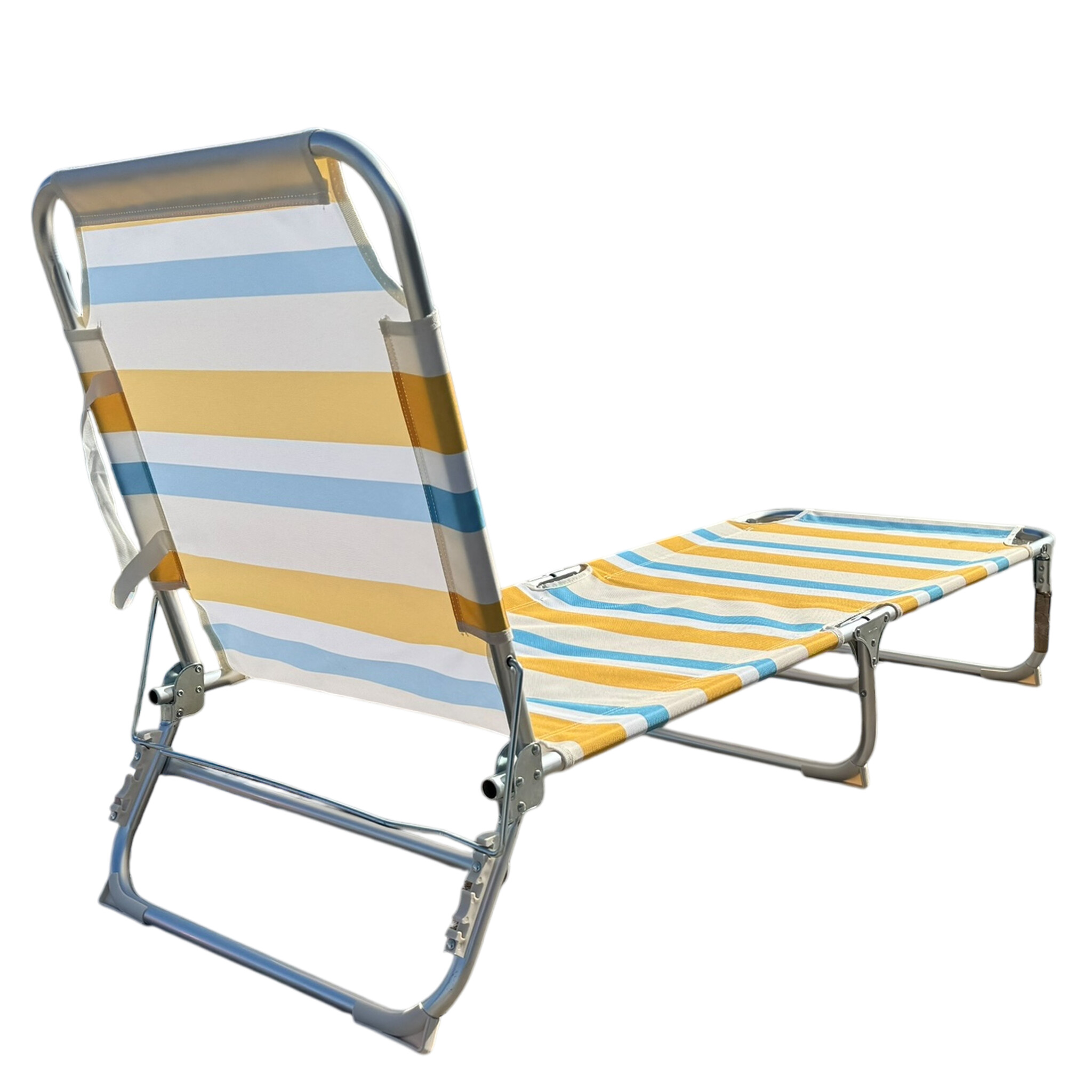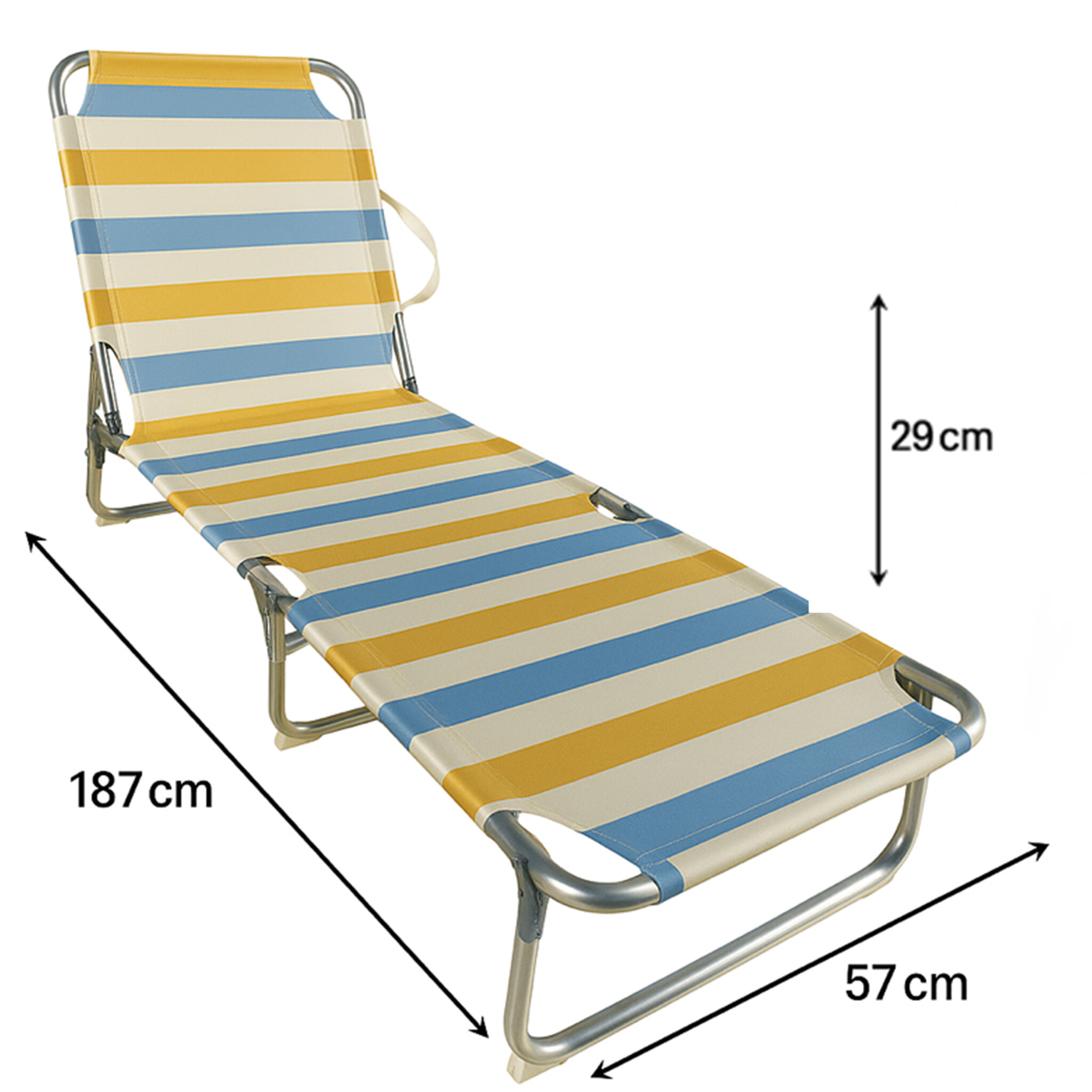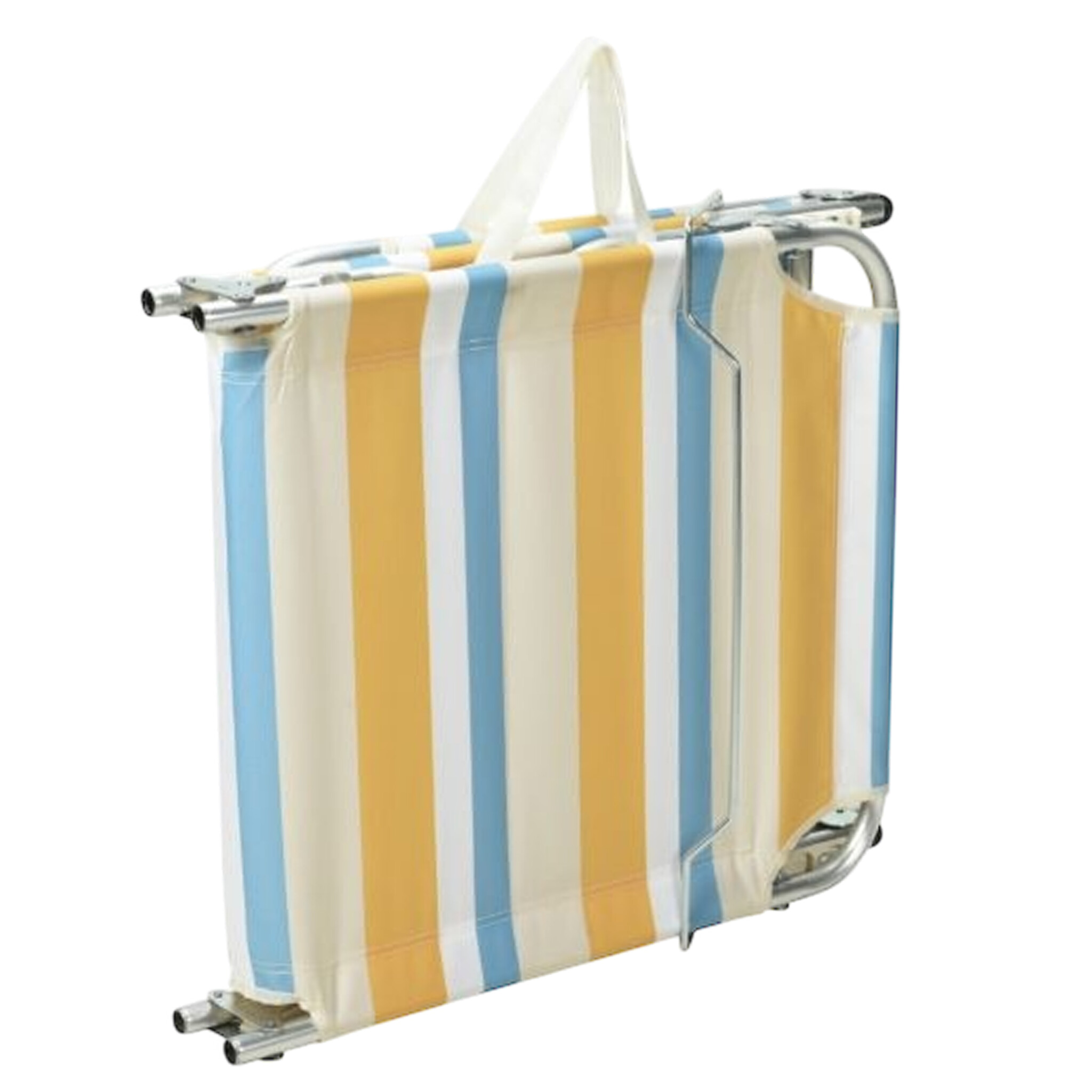 HEM Strandligbed Opvouwbaar – Lichtgewicht Aluminium Ligstoel – Strandbed met Verstelbare Rugleuning 3 standen – Outdoor Ligbed met Streeppatroon – Geel/Blauw/Wit