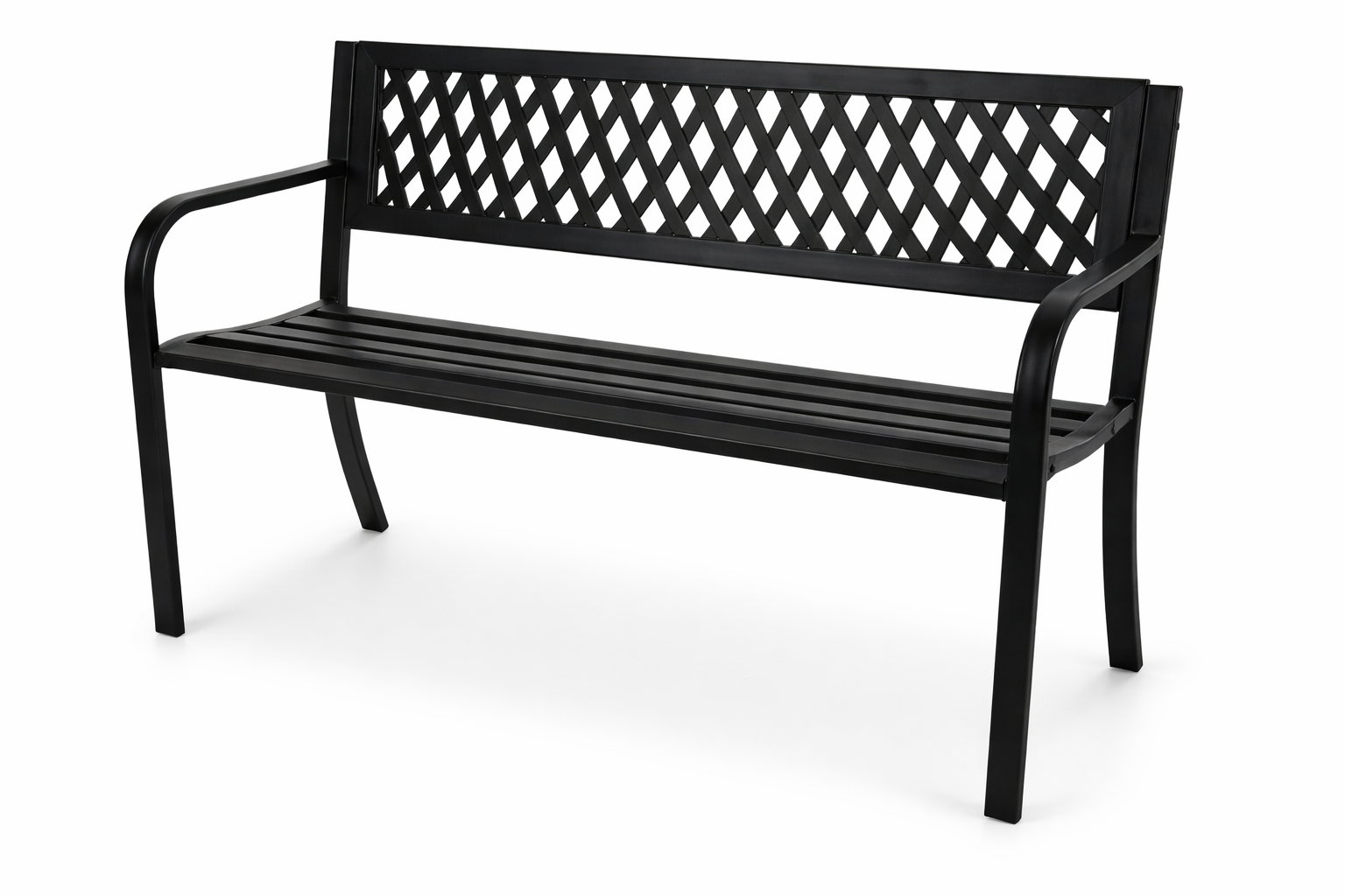 Deze zwarte stalen tuinbank is een praktische en stijlvolle zitoplossing voor buiten en ideaal voor wie op zoek is naar een onderhoudsvriendelijke, sterke en betaalbare tuinbank.