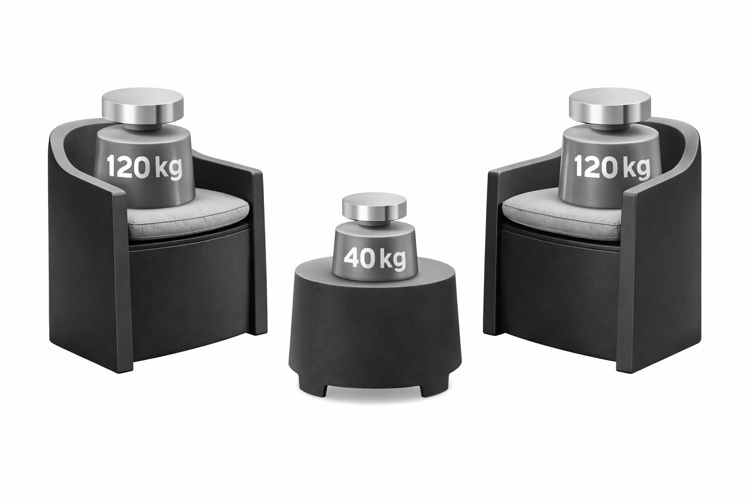 - Maximale belasting per stoel: 120 kg