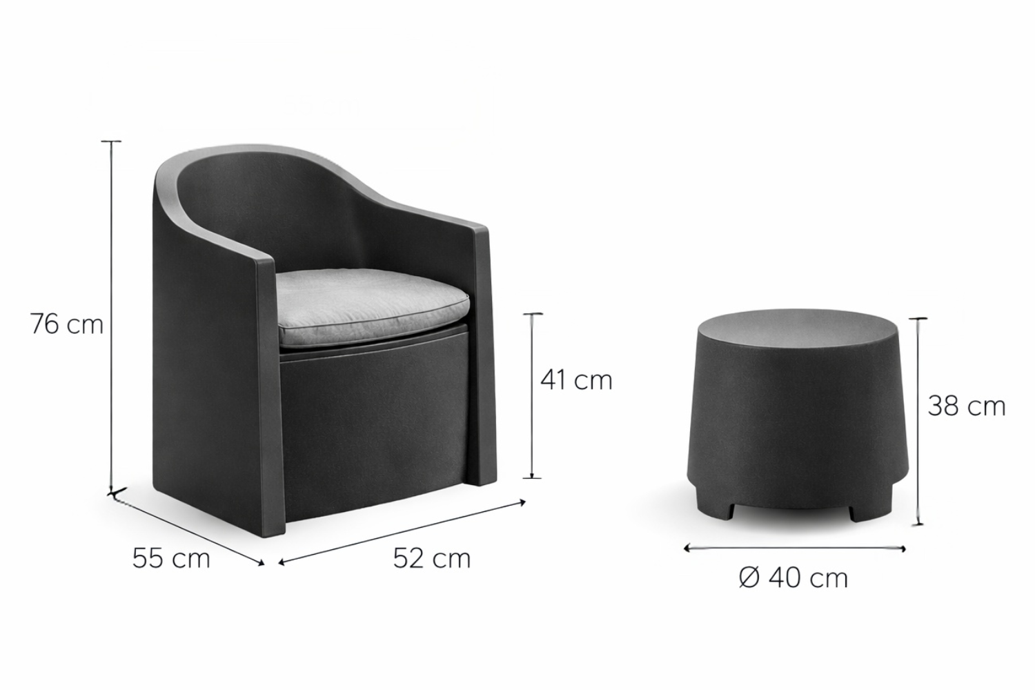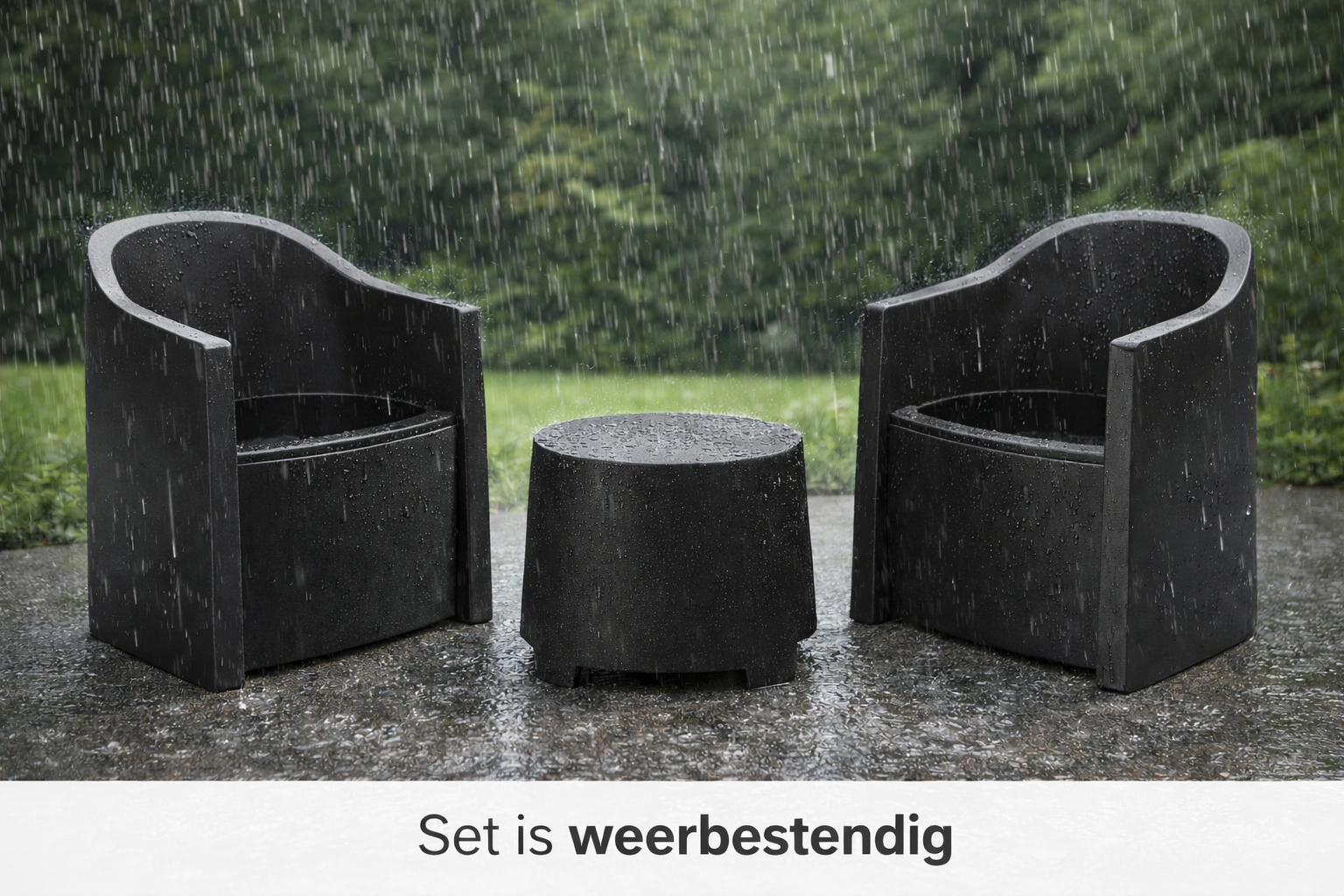 Het compacte formaat maakt deze set ideaal voor kleinere ruimtes zoals een balkon, dakterras of knusse stadstuin. Het tijdloze ontwerp zorgt ervoor dat de set in vrijwel iedere buitenomgeving past.