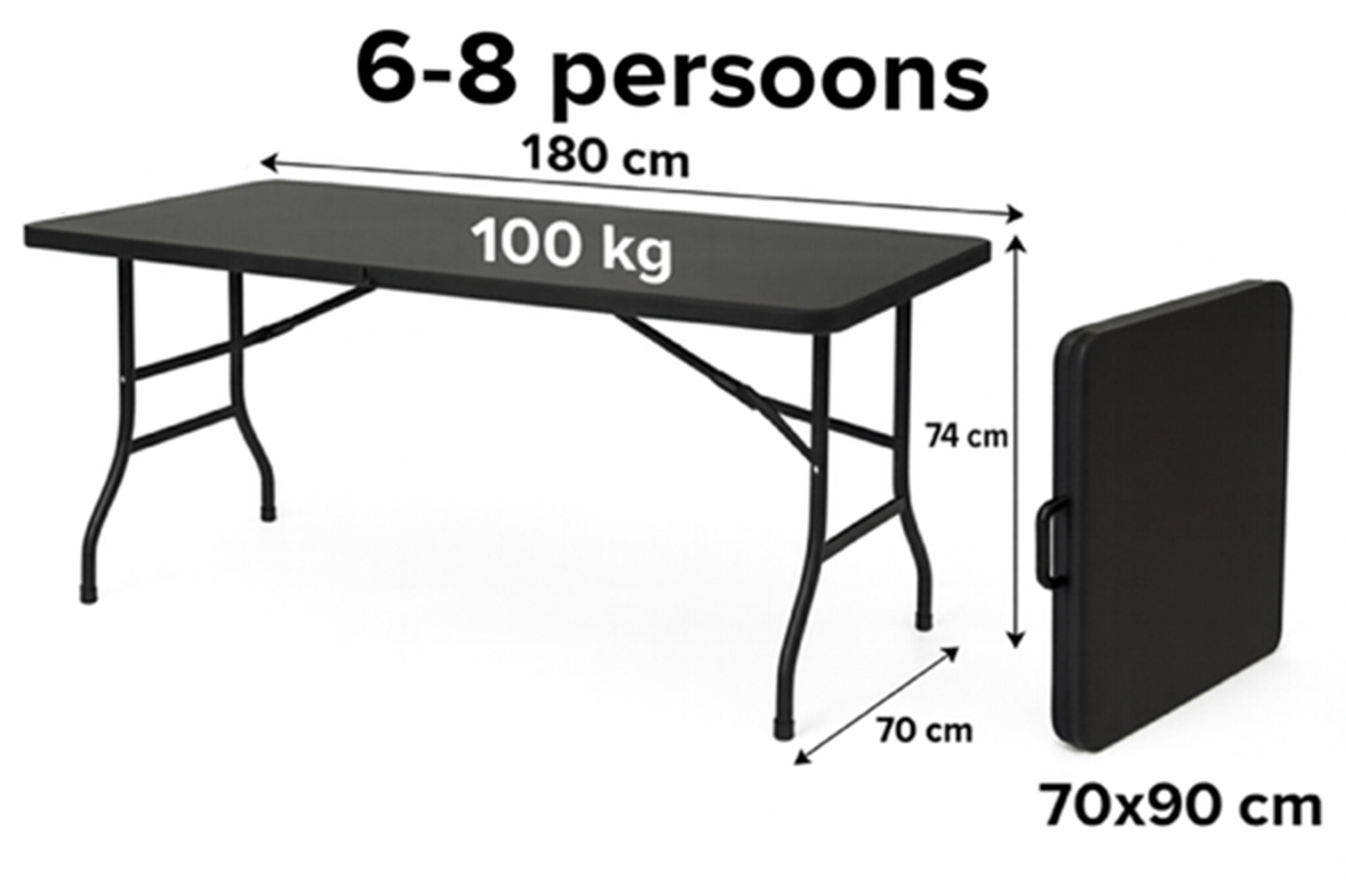 • Ideaal als vouwtafel voor feestjes, markten, klussen of kamperen