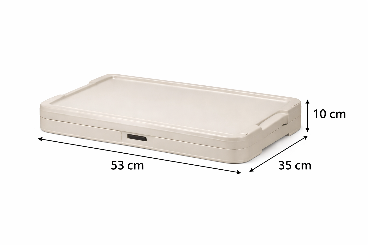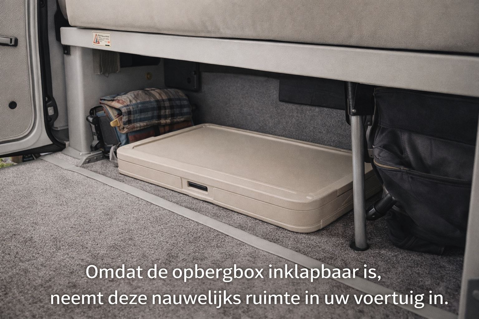 In uitgeklapte vorm is de box stabiel en makkelijk toegankelijk. In ingeklapte toestand is hij slechts 10 cm hoog, ideaal om op te bergen in een caravan, camper, kast of bagageruimte. De neutrale beige kleur past moeiteloos in elke omgeving, zowel binnen als buiten.