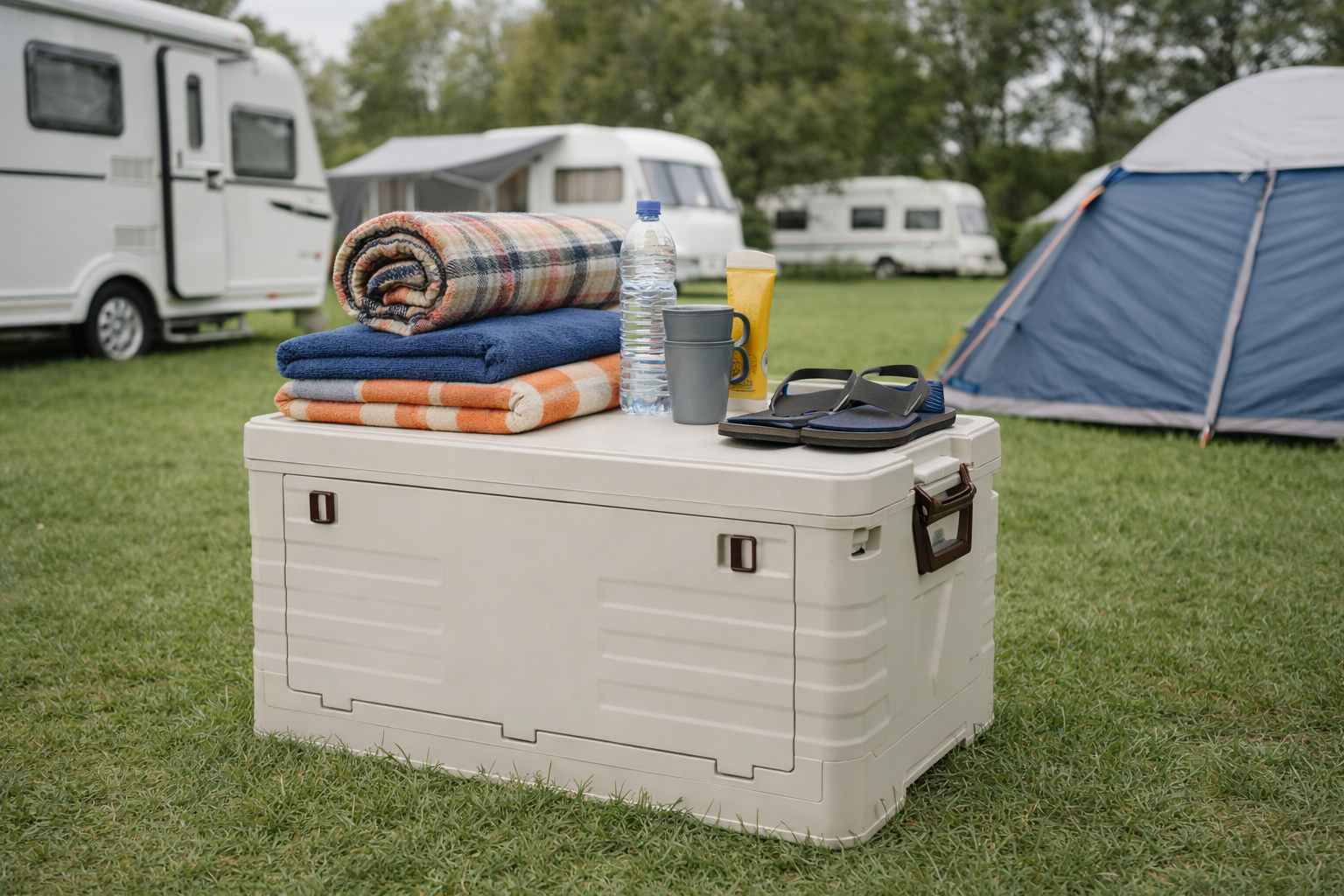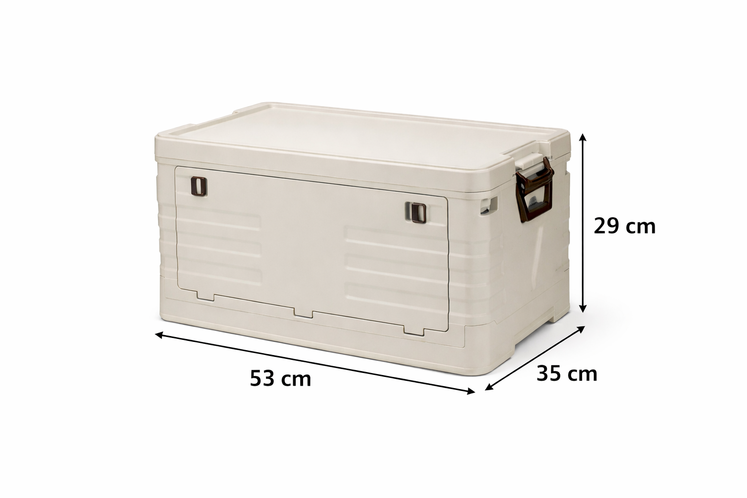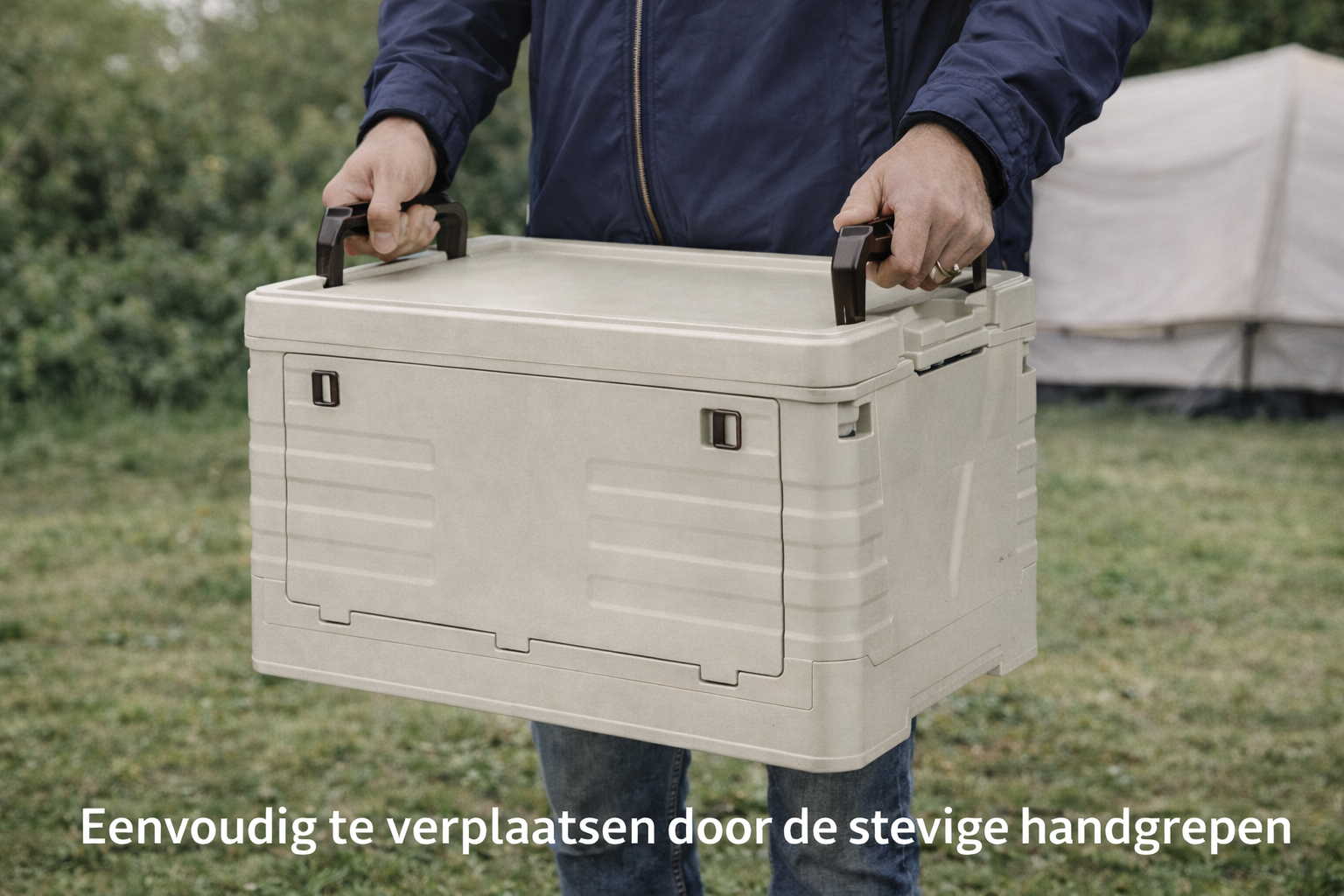 De opbergbox is gemaakt van stevig PP kunststof, waardoor hij goed bestand is tegen dagelijks gebruik tijdens het kamperen, in de auto, tent of caravan. Met een royale inhoud van 55 liter biedt hij voldoende ruimte voor campingaccessoires, boodschappen, kleding, gereedschap of andere spullen die je netjes wilt opbergen.