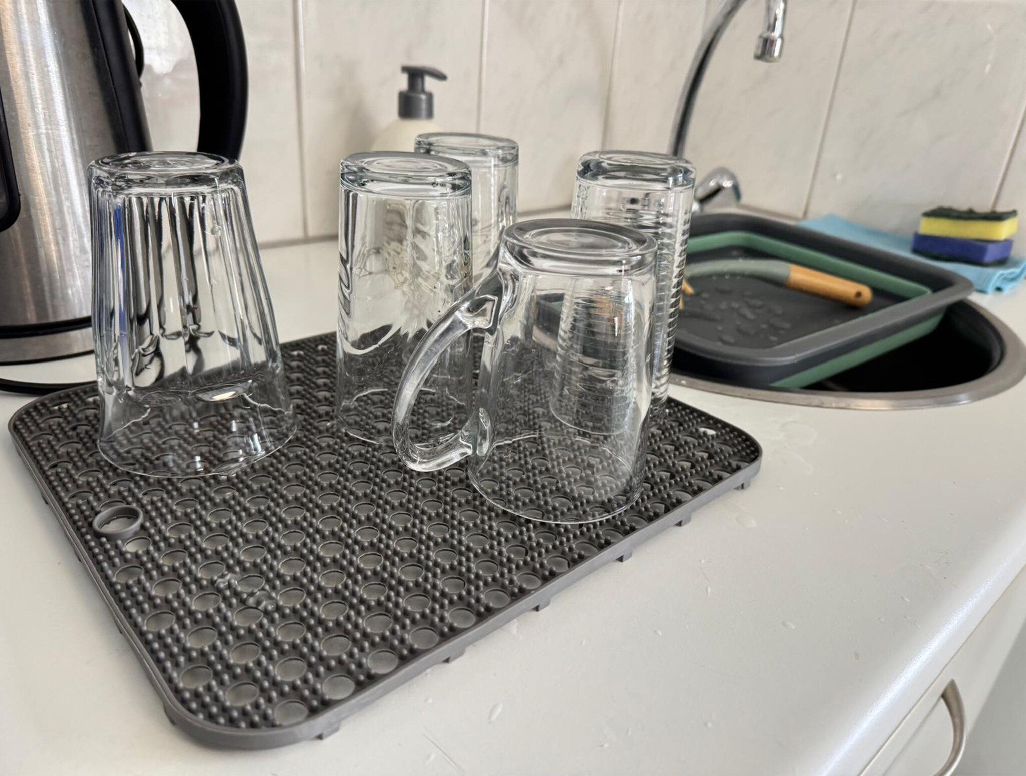 - Siliconen afdruipmat 29,5x26 cm in grijs – sneldrogend, antislip, hittebestendig
